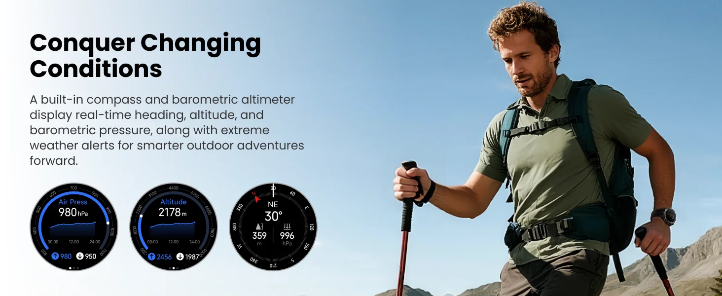 Track your adventures with pinpoint accuracy. Powered by L1+L5 dual-band positioning and connecting to 6 satellite systems (GNSS), this smartwatch delivers exceptionally stable and reliable location performance, even across the most complex environments.