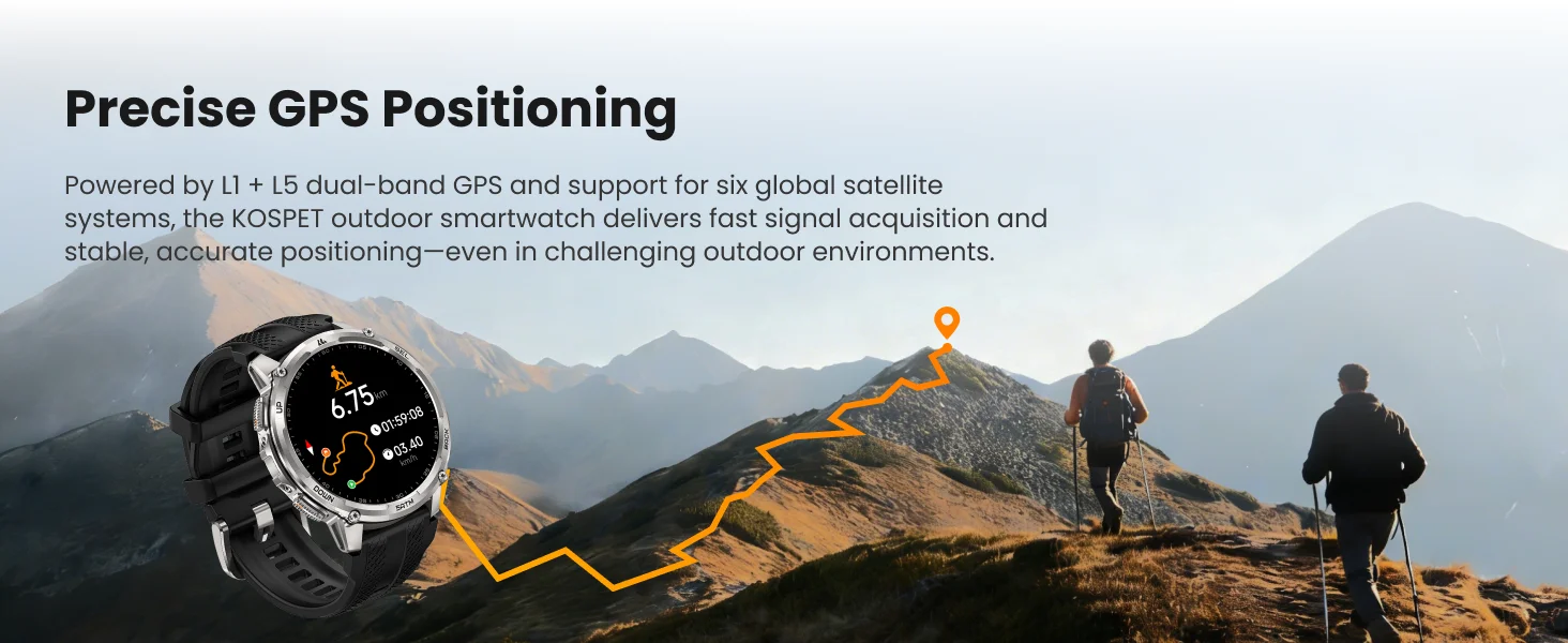 Stay connected with your team or friends through instant voice communication. The built-in Walkie-Talkie function enables fast, clear, and hands-free communication right from your wrist, perfect for outdoor activities and coordination.【Advanced Dual-Band GPS】